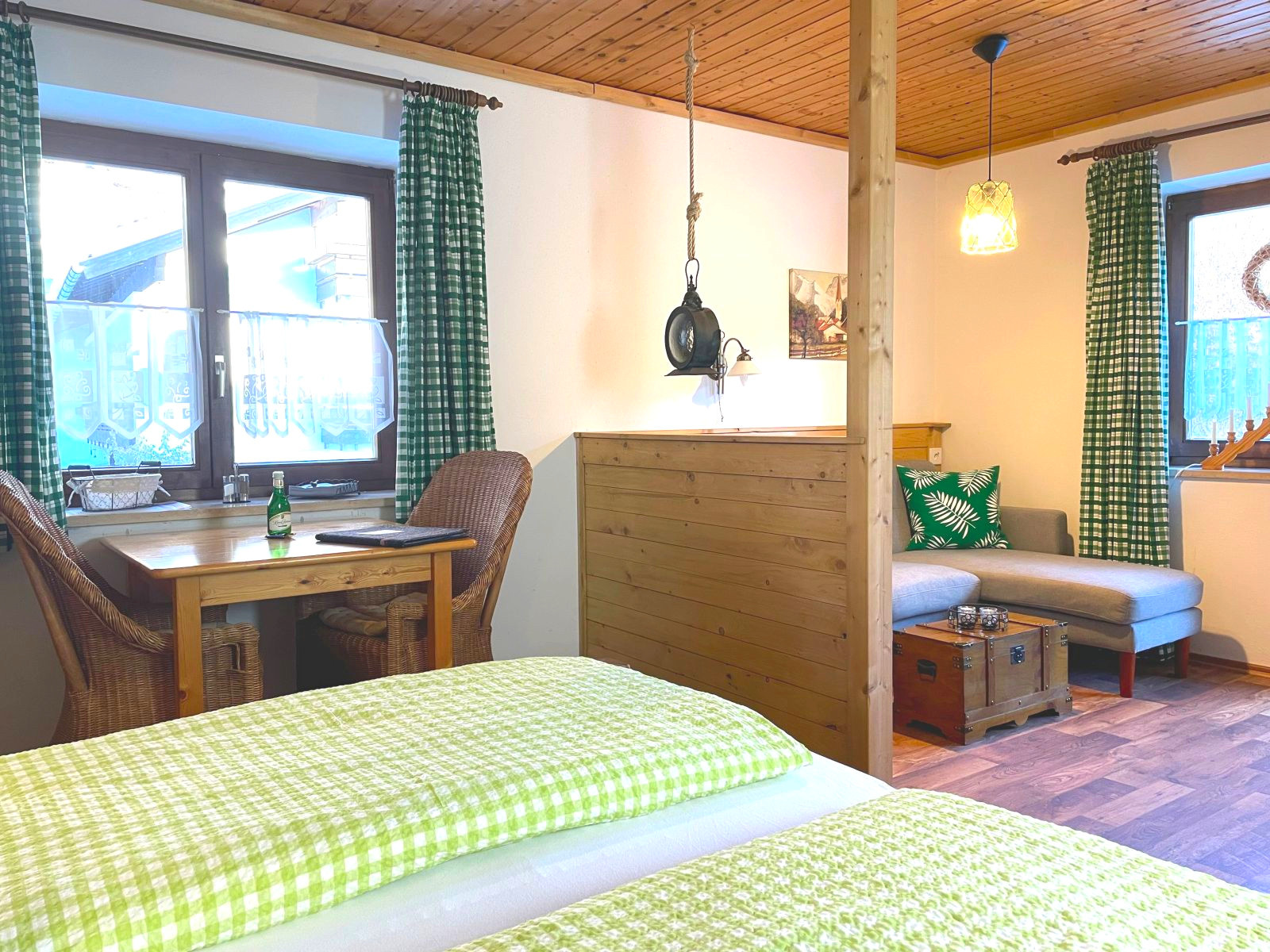 Die Wohnung Fellhorn ist mit viel Holz ausgestattet und besteht aus einem Wohn-/Schlafraum (mit Doppelbett, Ecksofa, Esstisch, LCD-TV), separater Küche, Dusche/WC und Balkon Richtung Osten. Die Wohnung befindet sich im ersten Obergeschoss. Die Wohnung kann mit der Wohnung Gaisberg zu einer großen Wohnung kombiniert werden.