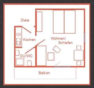1-Raum-Wohnung - bis 2 Personen - ca. 31 Quadratmeter